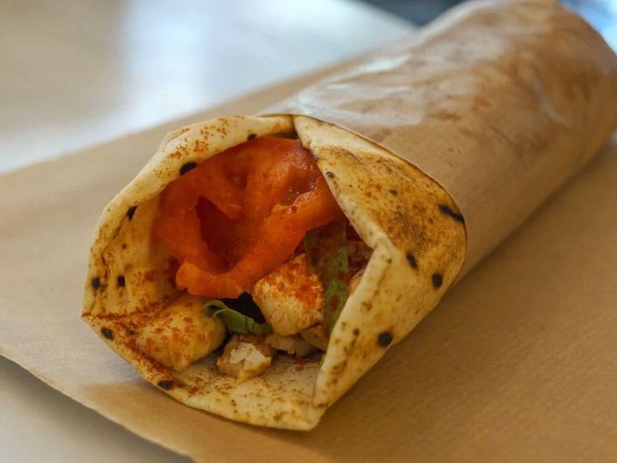 From the spit Wrapped in paper Eaten standind -not fancy but real